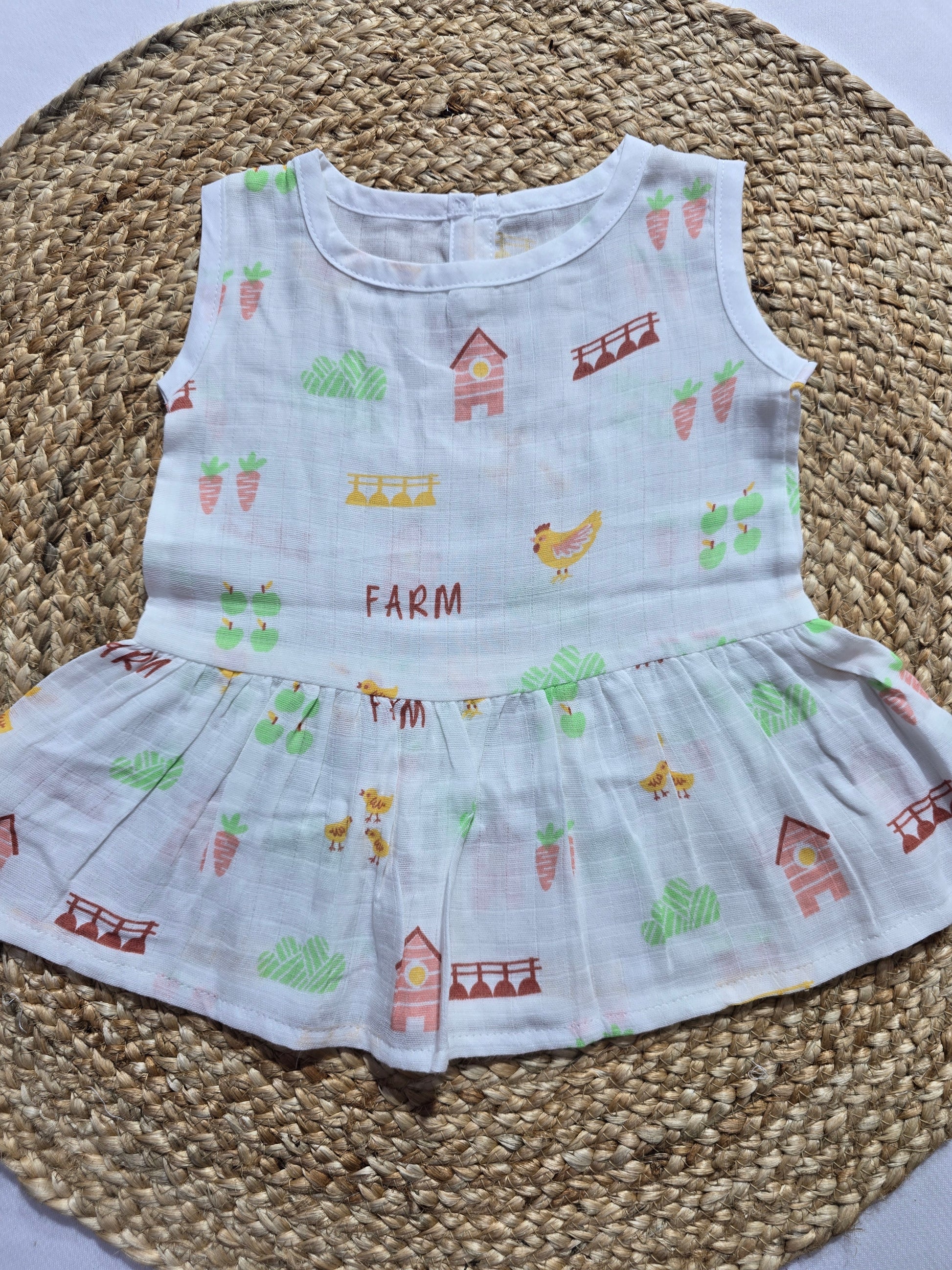 Baby's muslin frock button - Farm